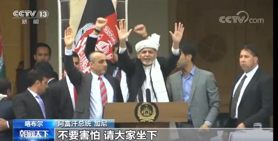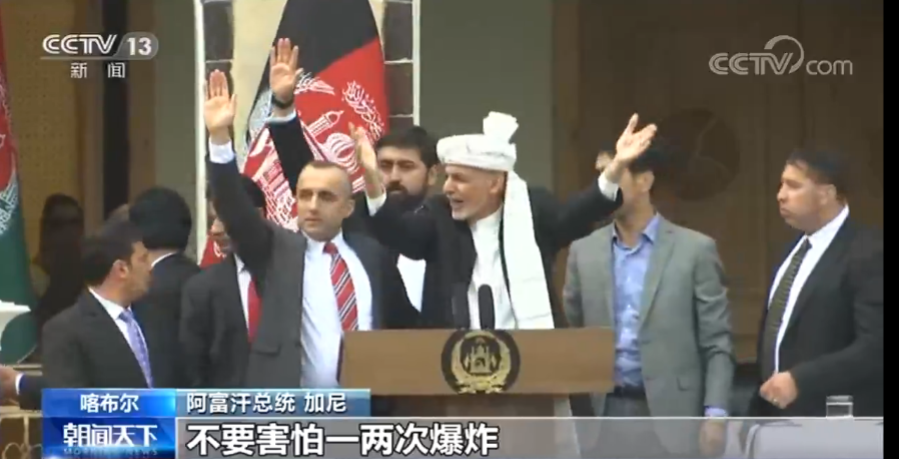 当时,阿富汗总统加尼正在发表就职演讲,现场突然传出爆炸声,加尼的就职演讲被迫中断。持续的爆炸声和强烈的震感让现场一片慌乱,不少人试图逃离就职现场。短暂的骚动后,不少观众重回座位,加尼的演讲这才得以继续。