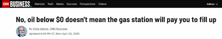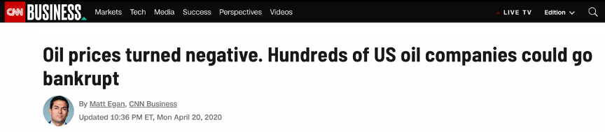 当地时间4月20日,美国5月份的西德州轻质原油期货WTI价格创下历史新低,收于-37.63美元/桶,这是纽约商品交易所1983年开设轻质原油期货交易以来从未出现过的现象。这意味着将原油运送到炼油厂或储存的成本已经超过了其本身的价值。