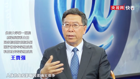 央视网消息(记者 潘聪 董淑云 王汝希):近日,本网记者就免疫力相关问题专访了北京大学第一医院感染疾病科主任王贵强教授。王教授认为,人的体质差别一方面是遗传,一方面是后天各种环境等的影响。和遗传背景有关的,我们客观是不好掌控的;我们可以掌控的,是后天各种环境因素的影响。