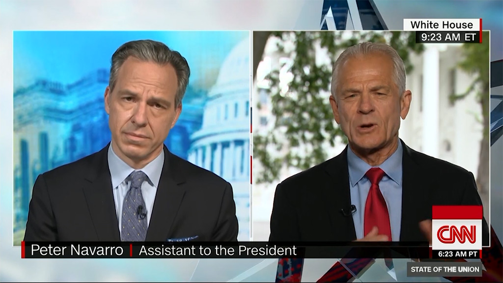纳瓦罗的这番谬论遭到CNN主持人杰克·塔珀(Jake Tapper)的质疑,两人就此展开了一番唇枪舌剑的争论。