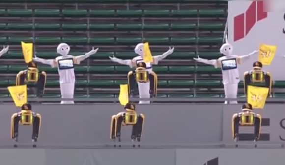央视网消息:7日,日本职业棒球联赛上出现趣味一幕。作为赞助商的某科技公司,派出机器人应援团,为其合作的球队加油助威。只见数十只机器狗排成一排欢快地“扭屁股”,场面颇为新奇。受疫情影响,日本各大联赛均出现了空场比赛的局面,该球队于是提出这种创造性的方法来填补看台上球迷的空缺。