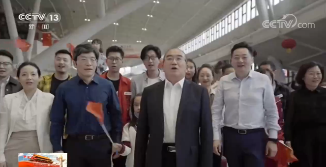 国庆前夕,武汉高铁站的市民与旅客与一场快闪活动不期而遇。人们以一曲《我的祖国》向这座英雄的城市致敬,向祖国深情告白。