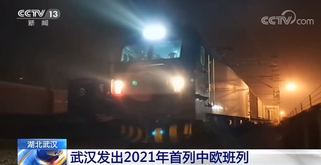 央视网消息:1月2日早上5时32分,2021年首列从武汉始发的中欧班列开启了。这辆中欧班列满载武汉及湖北地区企业生产的汽车零配件、电子产品、防疫物资等,从武汉吴家山站开出,经汉丹线、焦柳线运行,由阿拉山口出境,驶往德国杜伊斯堡。