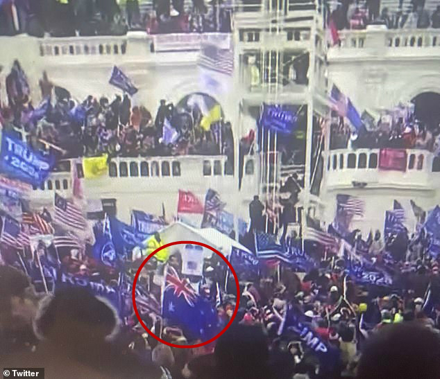 美国会骚乱现场出现澳大利亚国旗(图:《每日邮报》截取自推特)