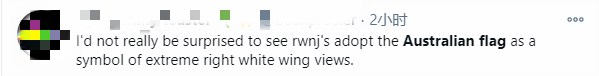 也不乏有网友感慨:“为什么有人觉得这一幕不合适?”“有人把澳大利亚国旗作为极右翼和白人至上主义的标志,我一点也不感到奇怪。”