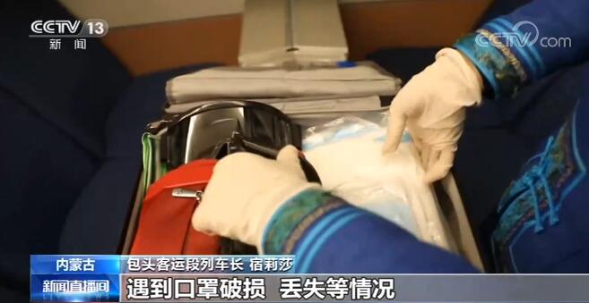 包头客运段列车长 宿莉莎:我们在列车上设立了“疫情服务包”,内有口罩、护目镜、手套等防疫物资。当乘车的旅客遇有口罩破损或丢失等情况时,我们可以及时为旅客提供帮助,让旅客安心乘车。