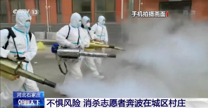 央视网消息:做好环境消杀可以有效阻断病毒传播,是疫情防控的重要一环。在河北石家庄新乐市有这样一支志愿者消杀队伍,他们不惧危险,连续半个多月,每天从早到晚奔波于新乐市城区和村庄进行消杀工作。
