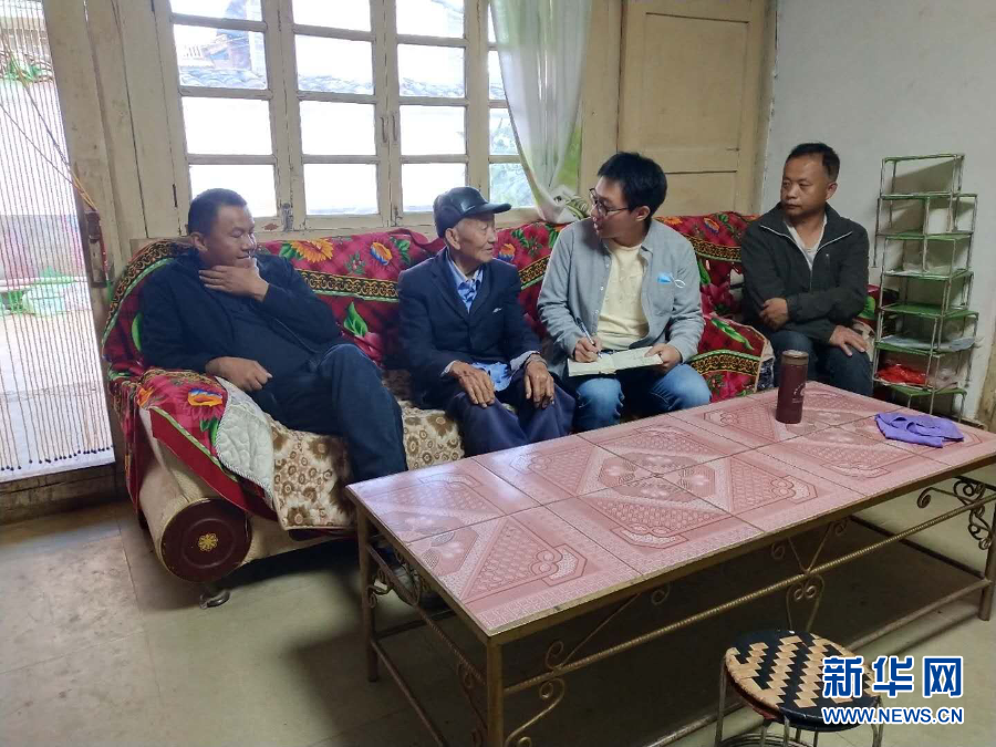 邱廷柱(右二)与村干部了解群众家庭情况。受访者供图
