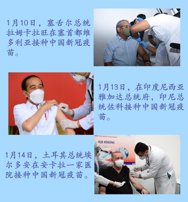 在武契奇之前,已有不少国家元首和政府高官以“带头接种”的方式为中国疫苗投下信任票。