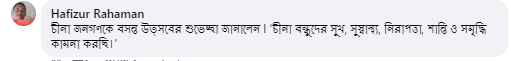 孟加拉国网友哈菲祖尔·拉曼留言:“中国的春晚让人赏心悦目,祝中国人民健康幸福,祝中国不断强大、发展。”
