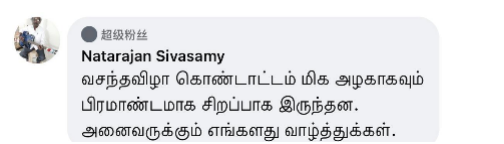 印度网友纳塔拉简·斯瓦萨米留言:“春晚特别精彩,舞台美丽炫目。祝大家新年快乐。”