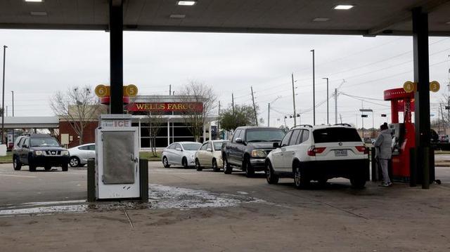 2月18日,人们驾车在美国得克萨斯州休斯敦市一个加油站排队加油。新华社发(劳承跃摄)