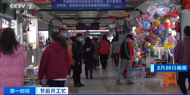央视网消息:作为全球最大的小商品集散中心,浙江义乌国际商贸城昨天(20日)复工开市了,采购商们从四面八方赶来采购、补货,开市第一天客流量就达到了18.9万人次。