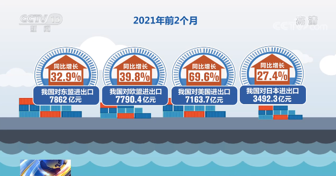 央视网消息:今年前两个月,我国中西部地区进出口增速比我国外贸整体增速高出23.6百分点。