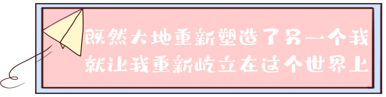 “我为自己写了一句话:既然大地重新塑造了另一个我,就一定会让我重新屹立在这个世界上。这句话一直激励着我自己。”