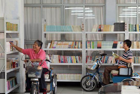△2017年9月13日,截瘫伤员在唐山市截瘫疗养院图书室内挑选图书