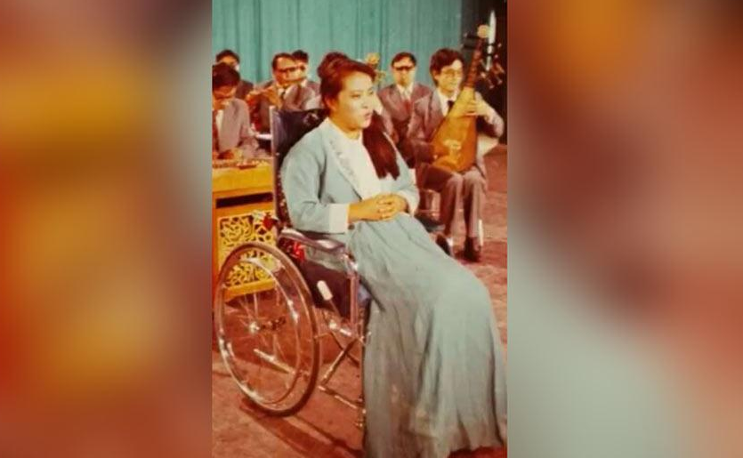 △唐山大地震截瘫伤员李冬梅正在歌唱《我和我的祖国》