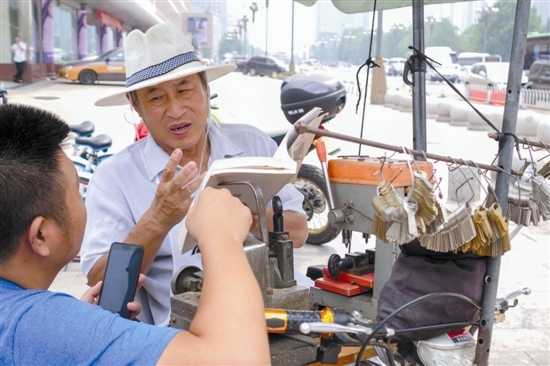 除此之外,杨玉芳每天还在繁华区为过往行人配钥匙。杨玉芳说,挣钱不是他的目的,靠自己的双手为别人服务才是他快乐的源泉。