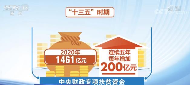 预算报告显示,“十三五”时期,中央财政专项扶贫资金连续五年每年增加200亿元,2020年达到1461亿元,并向受疫情影响较重地区、挂牌督战地区倾斜。2020年,一次性增加综合性财力补助资金300亿元,支持地方脱贫攻坚补短板。