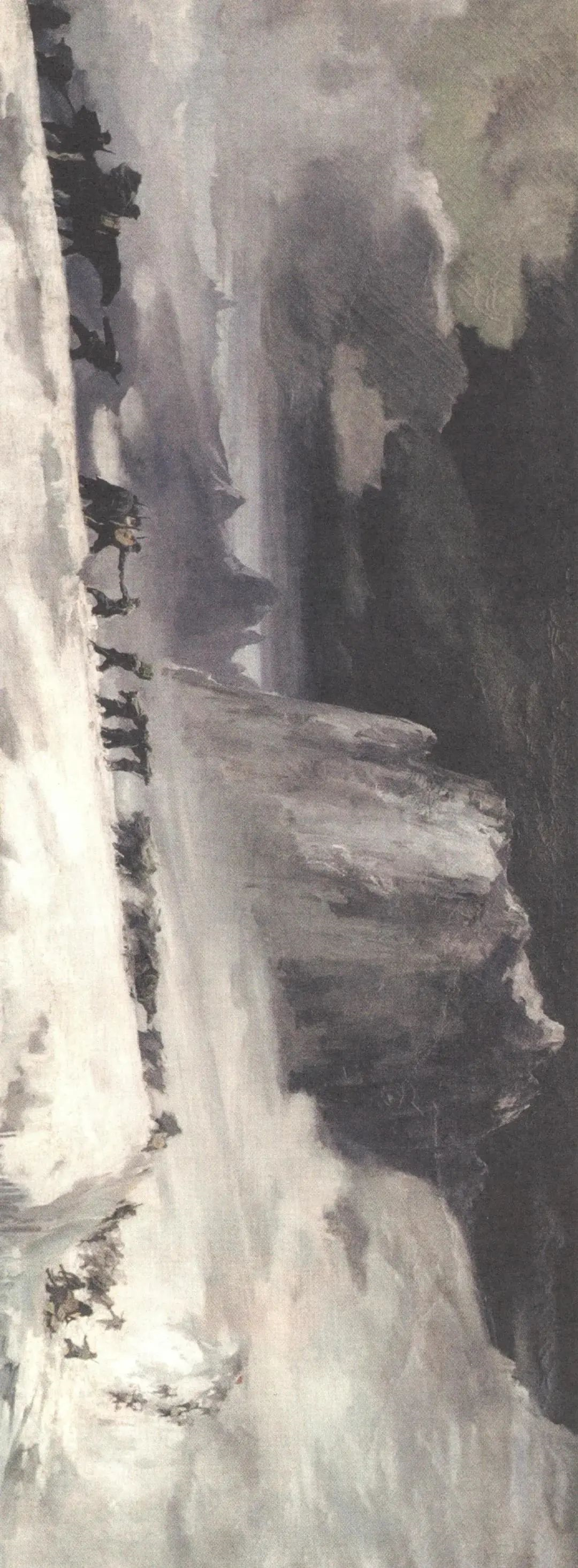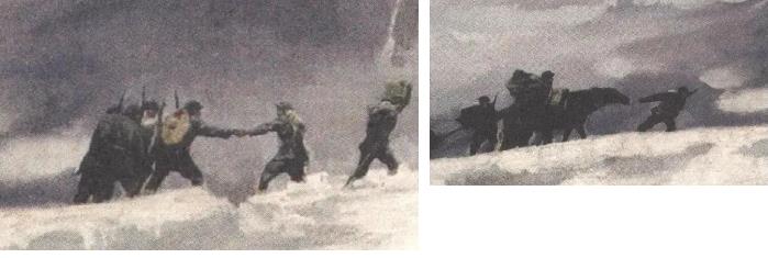 这件作品应该说是革命历史题材创作中的一幅经典,作品左侧的云端好像是凝固在天空中,和右边的暴风雪在构图上正好起到一个回应的作用。
