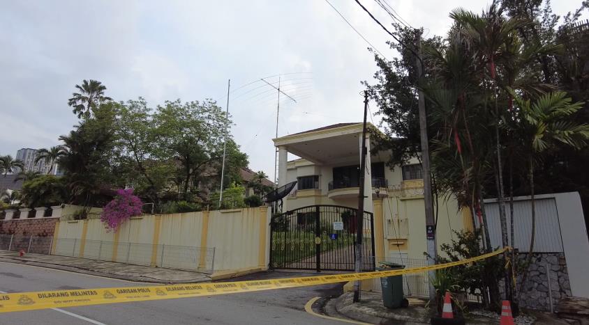 △朝鲜驻马来西亚使馆门前拉起了警戒线