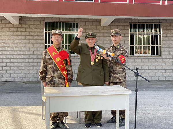 受老人的影响,孙子李毅杨自小爱好武术,立志参军入伍、报效国家。2014年开始在河南登封少林武校学习,2020年9月考入襄阳汽车职业技术学院,今年19岁的他便应征报名,经过体检、政考和严苛的役前教育训练后,顺利圆梦军营。
