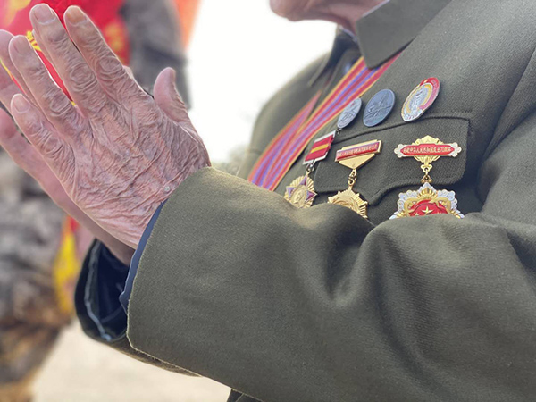 虽已年过九旬,李明海老人依然身体健康,眼神依旧刚毅坚定,军人风采不减当年。现场讲述当年出国作战参加抗美援朝的英雄岁月时,老兵显得十分激动,“当时动员赴朝作战,我主动报名,补充到了中国人民志愿军20军59师176团,1951年冬天,踩着冰跨过鸭绿江到达朝鲜,第二年夏天,在阵地上坚守了两个多月,因负伤才下阵地的。”