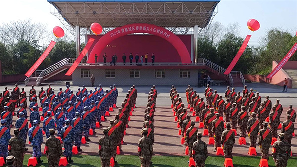 襄城区2021年春季新兵入伍欢送仪式。薛磊摄