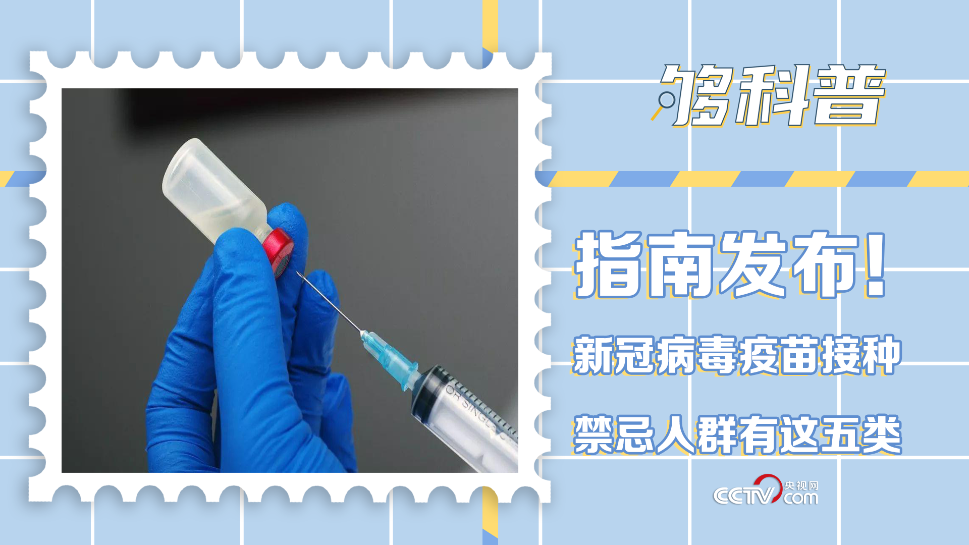 央视网消息:3月29日,国家卫生健康委发布《新冠病毒疫苗接种技术指南(第一版)》,明确:目前我国已有3种新冠病毒疫苗批准附条件上市或紧急使用,包括新冠病毒灭活疫苗、腺病毒载体疫苗和重组亚单位疫苗,适用对象为18周岁及以上人群。其中明确这五类人群不能打疫苗,快来了解一下!(制作 杨兆荃 策划 张恪忞 校对 宋春燕)