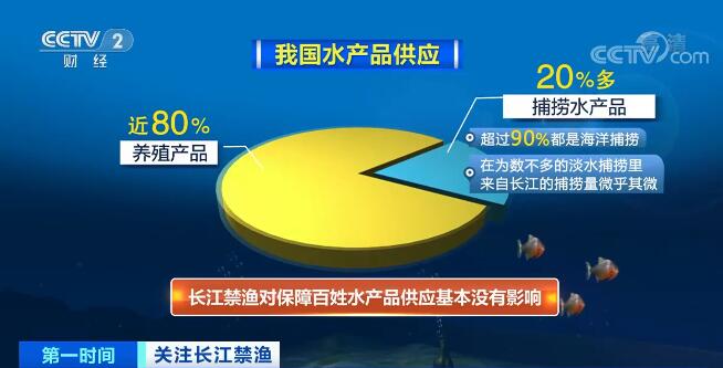 记者了解到,我国水产品供应除了近80%的养殖产品外,20%多为捕捞水产品,其中,超过90%都是海洋捕捞。在为数不多的淡水捕捞里,来自长江的捕捞量微乎其微。因此,长江禁渔对保障百姓水产品供应基本没有影响。