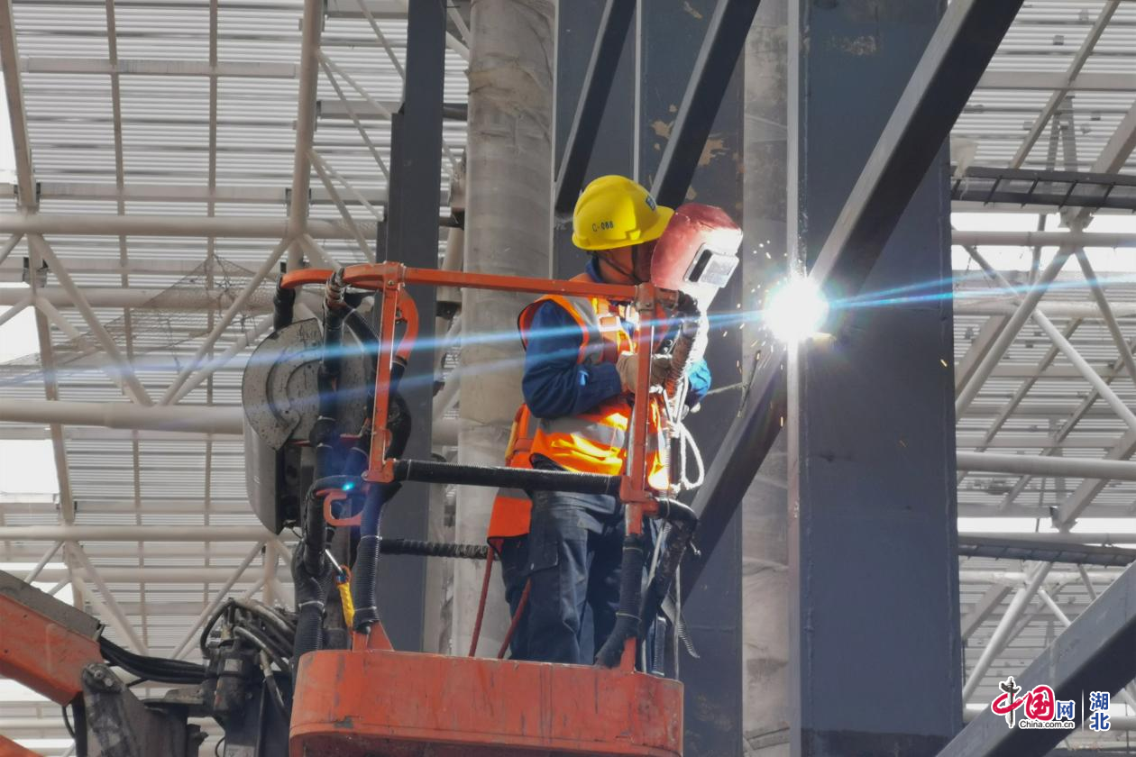 中国网鄂州4月1日讯 连日来春雨绵绵,仿佛是在为湖北省鄂州市的重点工程建设“加油”。3月30日,“疫后重振看湖北”全国网络媒体湖北行活动采访团来到鄂州花湖机场,十多平方公里的工程建设现场,塔吊林立、焊花飞舞,各种工程车辆往来穿梭,各个标段作业有序进行,机场航站楼已拔地而起。目前,该机场客运航站楼和货运航站楼土建、钢结构工程建设已经结束,正在进行屋面和幕墙的施工,预计七月中旬完成内装以及机电安装工程。