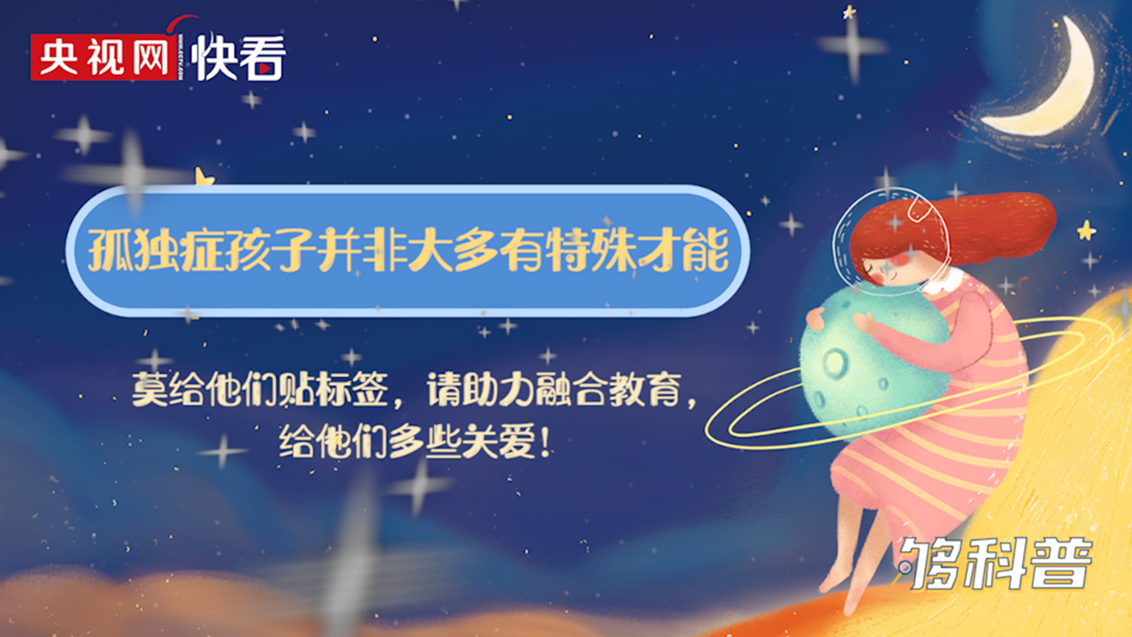 央视网消息(记者 阚纯裕 张恪忞 杨兆荃):孤独症患儿有一个梦幻的名字“星星的孩子”,这种疾病的主要核心障碍是社会交往和刻板行为。他们如同天上的繁星,在遥远而漆黑的夜空中独自闪烁。我国在1982年确诊首例孤独症患者,在2006年,我国将孤独症列入精神残疾,成为残疾类别。北京大学第六医院儿童心理中心副主任杨莉表示,有一些孤独症孩子,可能对数字特别敏感,计算能力特别强,或是有绘画的才能。但并不是说所有的孤独症孩子都是有特殊才能的,有特殊才能的是很少一部分人。大多数的孤独症孩子,常常伴有认知能力发育落后,他们在接受普通学校教育时,可能会有困难,需要全社会给予特殊关爱。(校对 宋春燕)
