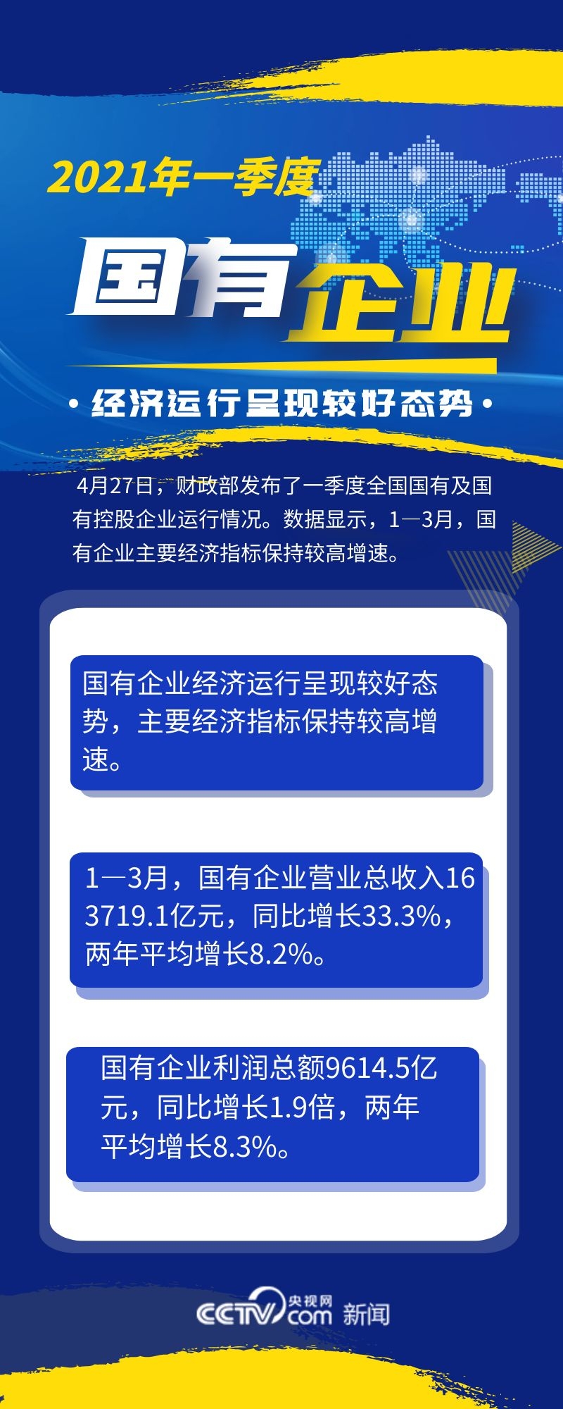 4月27日,财政部发布今年一季度全国国有及国有控股企业运行情况。数据显示,1—3月,国有企业主要经济指标保持较高增速。