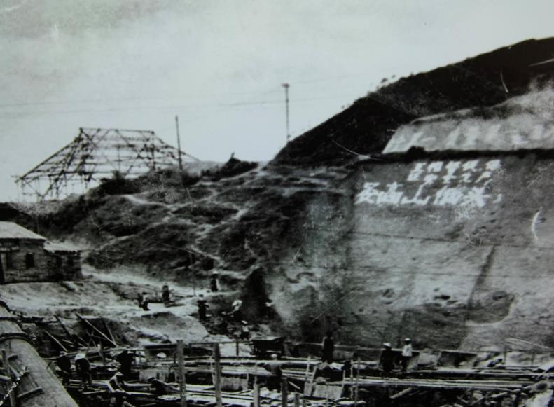 “要高山低头,令河水倒流”的标语在建设工地上十分醒目。(广东省水利厅供图)