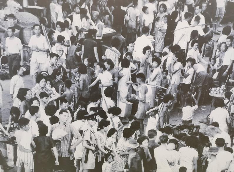 1963年5月,香港市民轮候抢水的混乱场面。(广东省水利厅供图)
