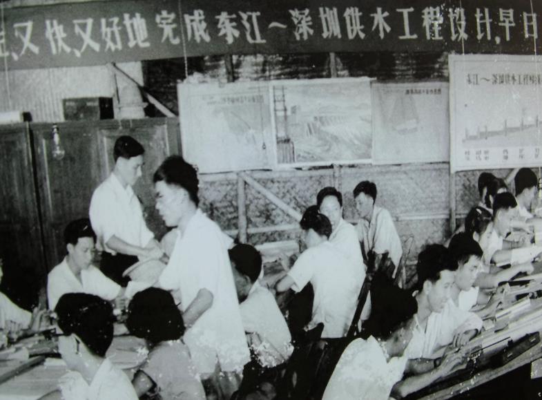 提起那段经历,时任广东省水电厅设计院技术员、现年86岁的王寿永感慨万分。他介绍说,当时工程设计人员分成3组分别下到东江口桥头、马滩、竹塘3个工地现场。在马滩站点,他主要负责马滩、塘厦等6个泵站的厂房设计工作。“工地只有临时帐篷,被褥、蚊帐、绘图工具等都得自己带。工程建设进度要求很紧,为赶工期,常常通宵达旦,每天最少也要持续工作13个小时以上。但大家干劲十足,没有一个人叫苦叫累!”