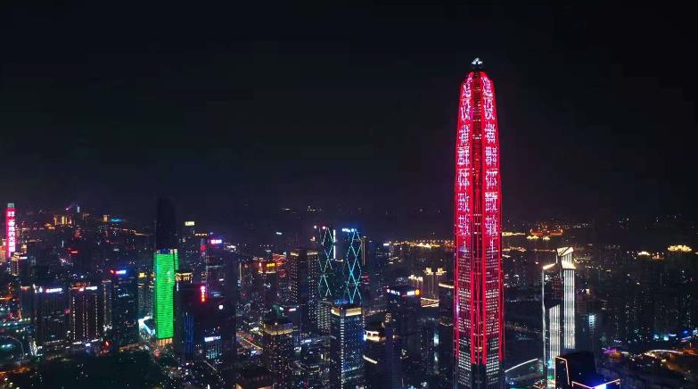 深圳市地标建筑上的致敬标语。(图片来自《羊城晚报》)