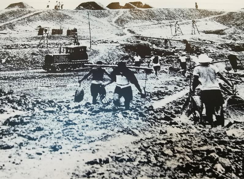 听从召唤,日夜奋战,肩挑背扛,开挖河渠。(广东省水利厅供图)