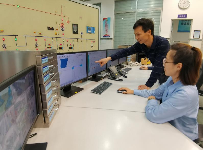 桥头供水管理部负责人陈耀荣正在中控室了解对港供水情况。(本刊记者孙进军 摄)