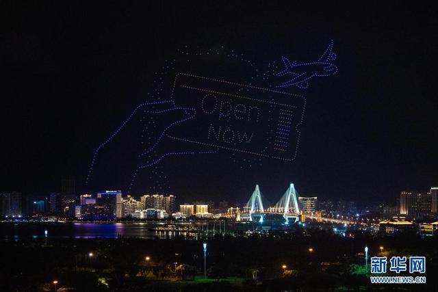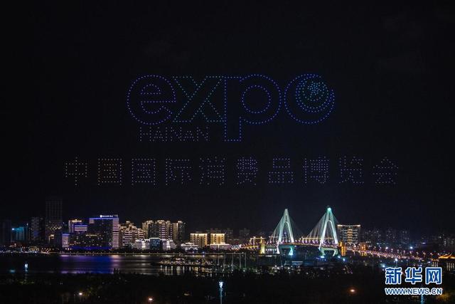 首届中国国际消费品博览会将于5月7日至10日在位于海口的海南国际会展中心举办。5月6日晚,海口市上演无人机表演秀,迎接首届消博会的举办。