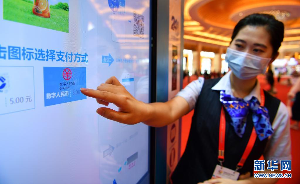 5月8日,工作人员在介绍数字人民币售货机使用方法。新华社记者 郭程 摄