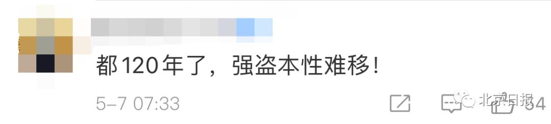 也有网友留言感慨:“都120年了,强盗本性难移!”