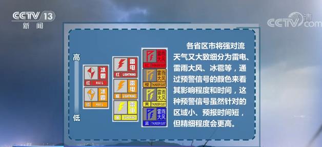 此外,气象台发布的预警信号也会提示强对流天气即将发生的时间和区域。中央气象台发布的强对流天气预警,会比各省区市发布的预警面积更大、预警时段更长、预警时间更提前。而各省区市将强对流天气又大致细分为雷电、雷雨大风、暴雨、冰雹等。通过预警信号的颜色来看其影响程度和时间,这种预警信号虽然针对的区域小、预报时间短,但精细程度会更高。因此大家要多多关注当地短时临近预报、预警,尽量避免在强对流天气发生时段外出。