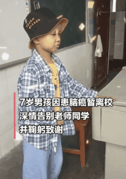 宝贝加油!7岁男孩患脑癌离校与老师同学告别。