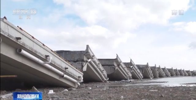 青海省交通检测有限公司高级工程师 陈建友:首先第一个是我们这次地震的震级比较高,7.4级;地震的地震波向东有一个力,再一个由南向北有一个力,南北这个方向的力,造成了桥梁整个桥跨向一个方向掉垮的现象。路面隆起情况来看呢,都是由南向北推移造成路面的隆起。