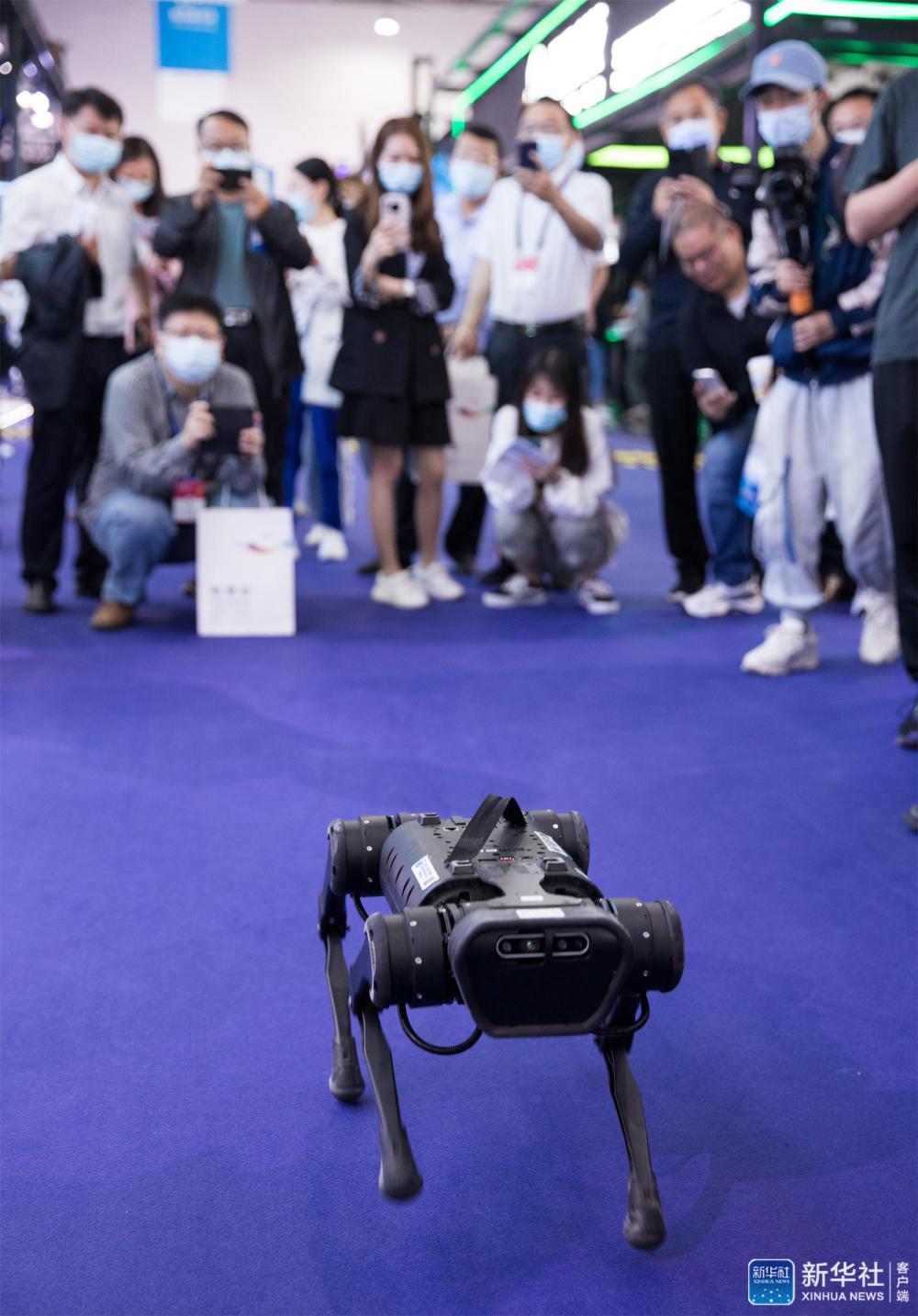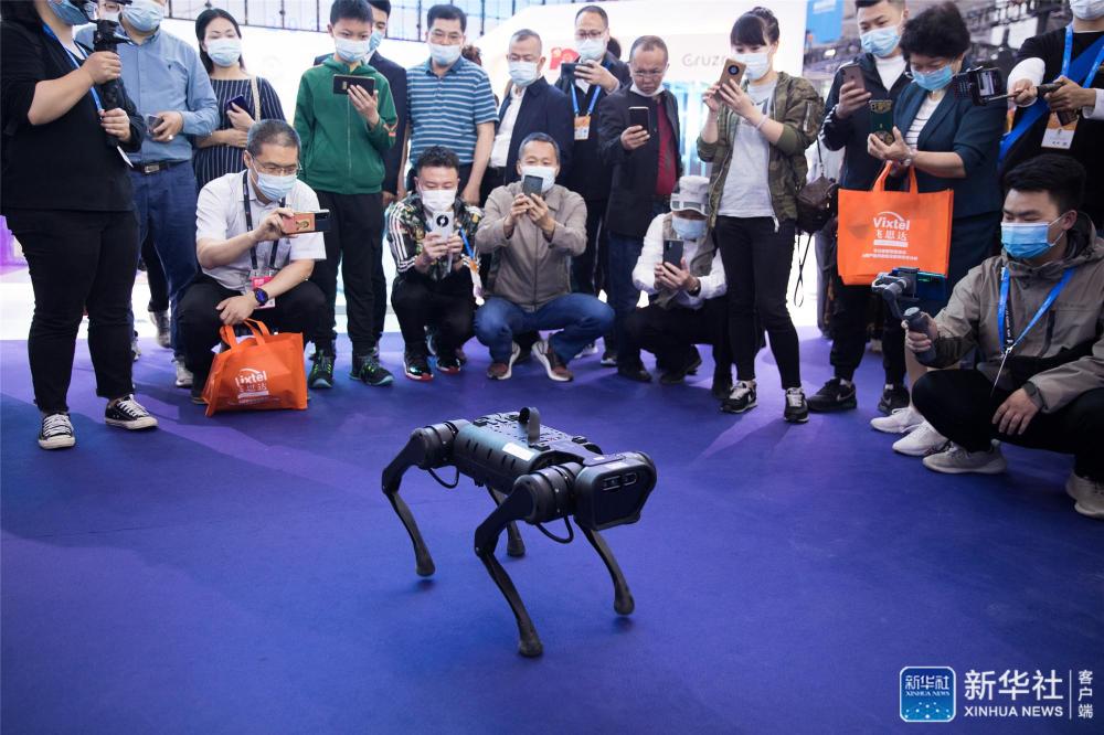 5月26日,参会者在数博会上围观一款四足智能机器狗。新华社记者 金立旺 摄