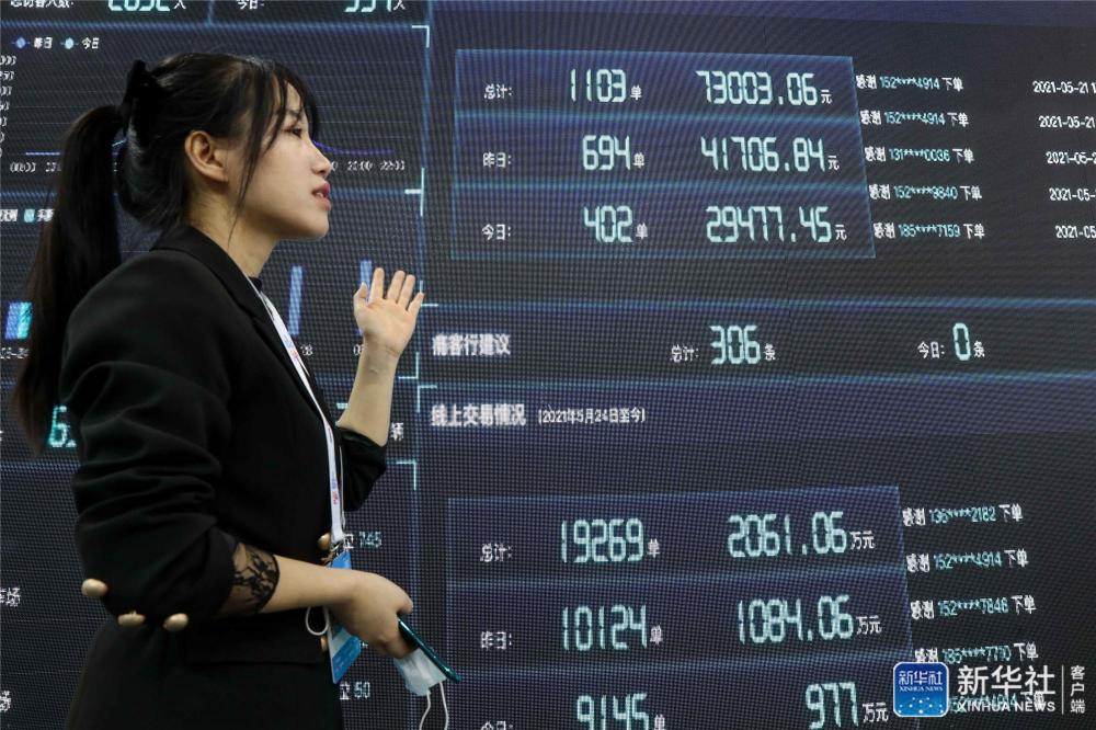 5月26日,参展工作人员在数博会上通过大屏幕展示智慧商圈数据可视化系统。新华社记者 欧东衢 摄