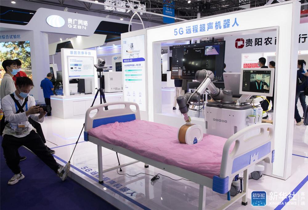 5月26日,5G远程超声机器人在数博会上演示远程超声检测。新华社记者 金立旺 摄