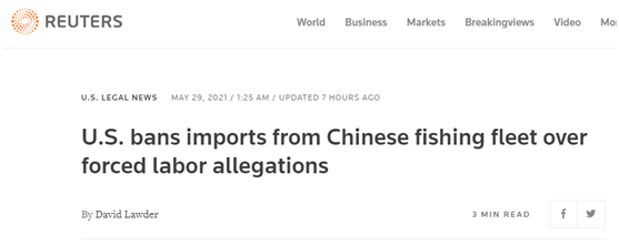 路透社还提到,本周早些时候,美国贸易代表戴琦呼吁关注渔船上“强迫劳动”的问题,她向世贸组织提交了一份新文件,要求遏制对非法捕鱼的补贴,并要求成员国承认这一问题。