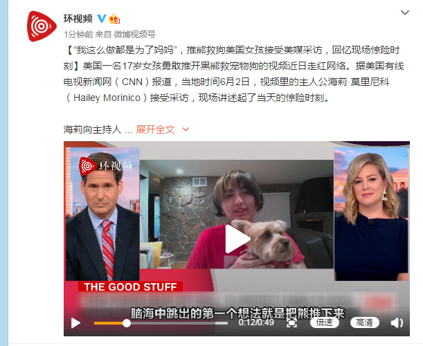 正在阅读:“我这么做都是为了妈妈”,推熊救狗美国女孩接受美媒采访,回忆现场惊险时刻